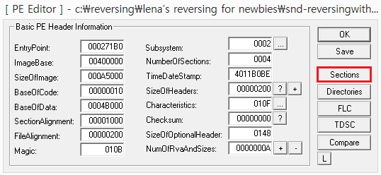 PE Editor - Sections 버튼을 클릭하자.