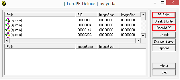 Rebuild PE 버튼을 클릭하여 리빌드하면 된다. 하지만 덤프가 제대로 되지 않는다.