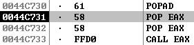 그럼 위와 같이 OEP로 점프하기 전에 중지된다.