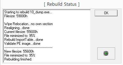 덤프뜨면서 IAT가 깨졌을 수 있기 때문에 LordPE 도구로 리빌드해주자.