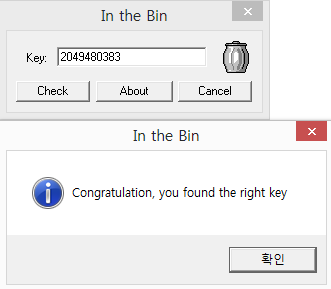 Key 값으로 100을 입력했더니 EAX 레지스터에 0x64 값이 저장된다. 0x64는 10진수 100을 16진수로 표현한 것이다. 즉, 입력된 Key 값을 16진수로 변환한 후 0x7A2896BF 값과 비교하고 같으면 성공 메시지를 확인할 수 있다.