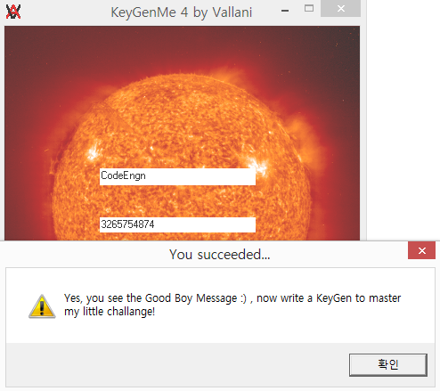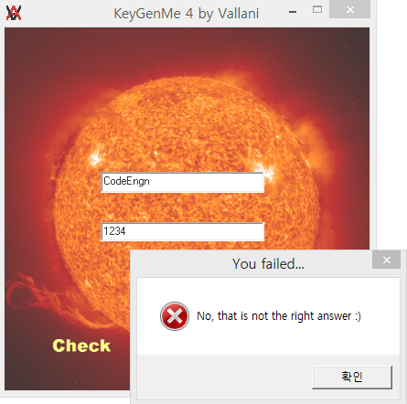 [사진 4]에서 확인한 값이 Name 값이 "CodeEngn"일 때 올바른 Serial 값이이다.