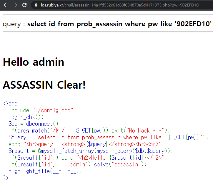 urlHome ="https://los.rubiya.kr/chall/assassin_14a1fd552c61c60f034879e5d4171373.php"