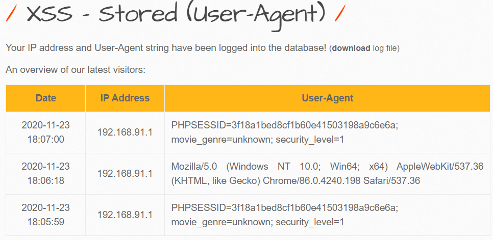 bWAPP A3 Cross-Site-Scripting - Stored (User-Agent)