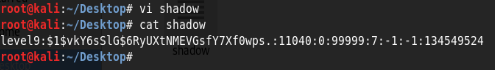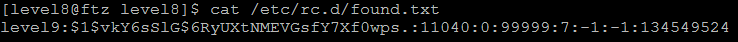 해당 파일의 내용을 보면 level9 계정의 shadow 파일 내용이 있다.
