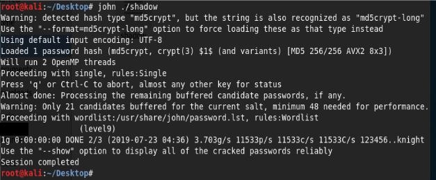 해당 내용을 John 도구로 crack을 하기 위해 파일을 생성하였다.