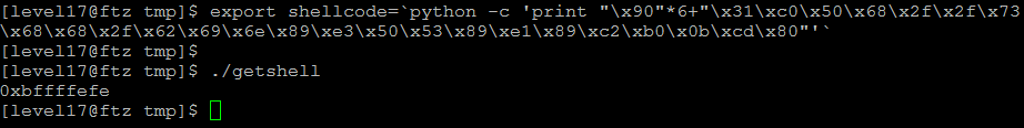 먼저 환경변수로 shellcode를 입력하자. 사용한 shellcode는 다음과 같다.