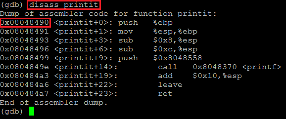 앞서 확인했던 printit 함수의 주소를 볼 수 있다.