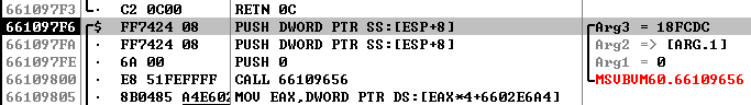 첫 번째로 vbaVarTstEq 함수가 사용되는 곳부터 디버깅해보자.