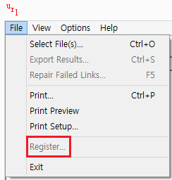 URLegal 프로그램을 실행하면 위와 같은 모습이다. File - Register... 기능을 클릭해보자.
